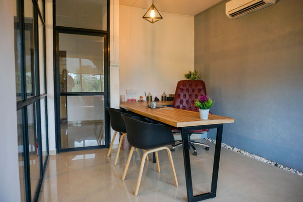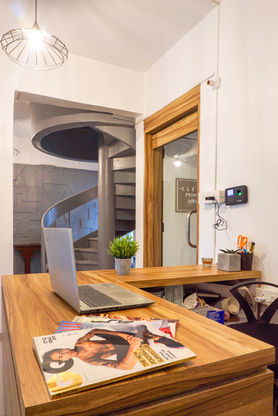 Elevate Promotions is a chic fashion P.R Firm relocated to the hub of Bandra West owned by 2 entrepreneurial head sisters. The brief of the project was to create an elegant and minimalist working space for a capacity of 25 young girls. The spaces required was a small cabin for the proprietor who handles back office along with an accounts cabin + a huge space cabin for the other owner who handles on ground and client network. The rest of the staff to be divided in two segments of sourcing and marketing. The reception, conference room, pantry & restrooms were other areas required. The colour palate of teak wood juxtaposed with black aluminium French partitions. The French Partitions was designed to make the space look seamless..